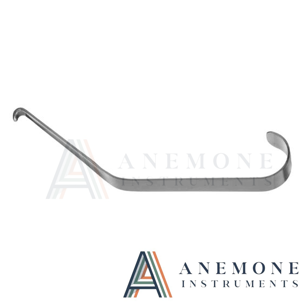ANEMONE BRAND Obwegeser Channel Retractor is a specialized surgical instrument designed for precise soft tissue retraction during oral and maxillofacial procedures. Measuring 16 cm in length, this retractor features a uniquely designed channel blade that allows for effective tissue displacement while maintaining a stable and secure hold.